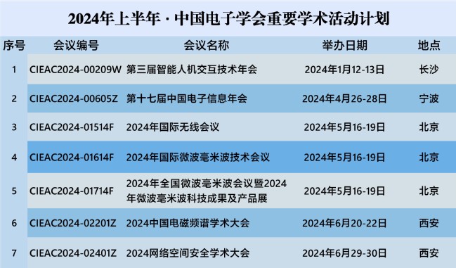 中國電子學(xué)會2024年上半年學(xué)術(shù)交流活動計劃正式發(fā)布